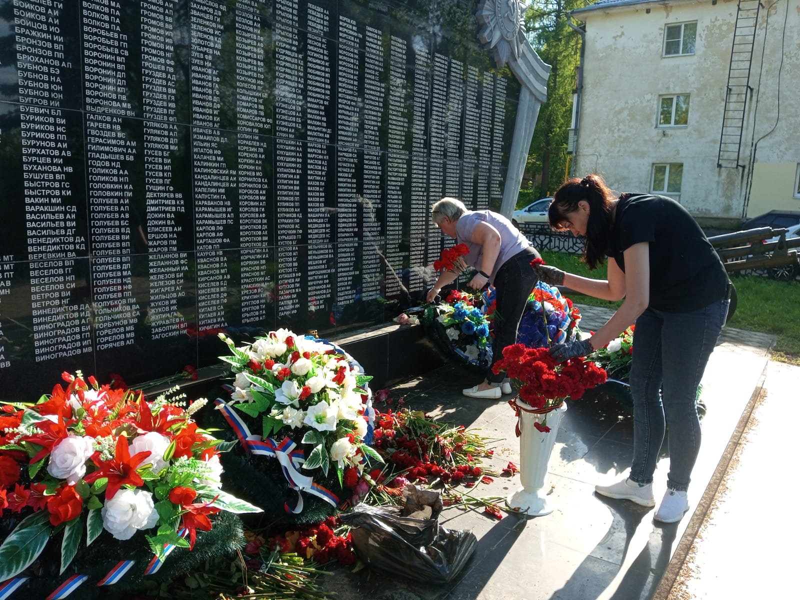 возложили цветы к обелиску участникам Великой Отечественной войны.