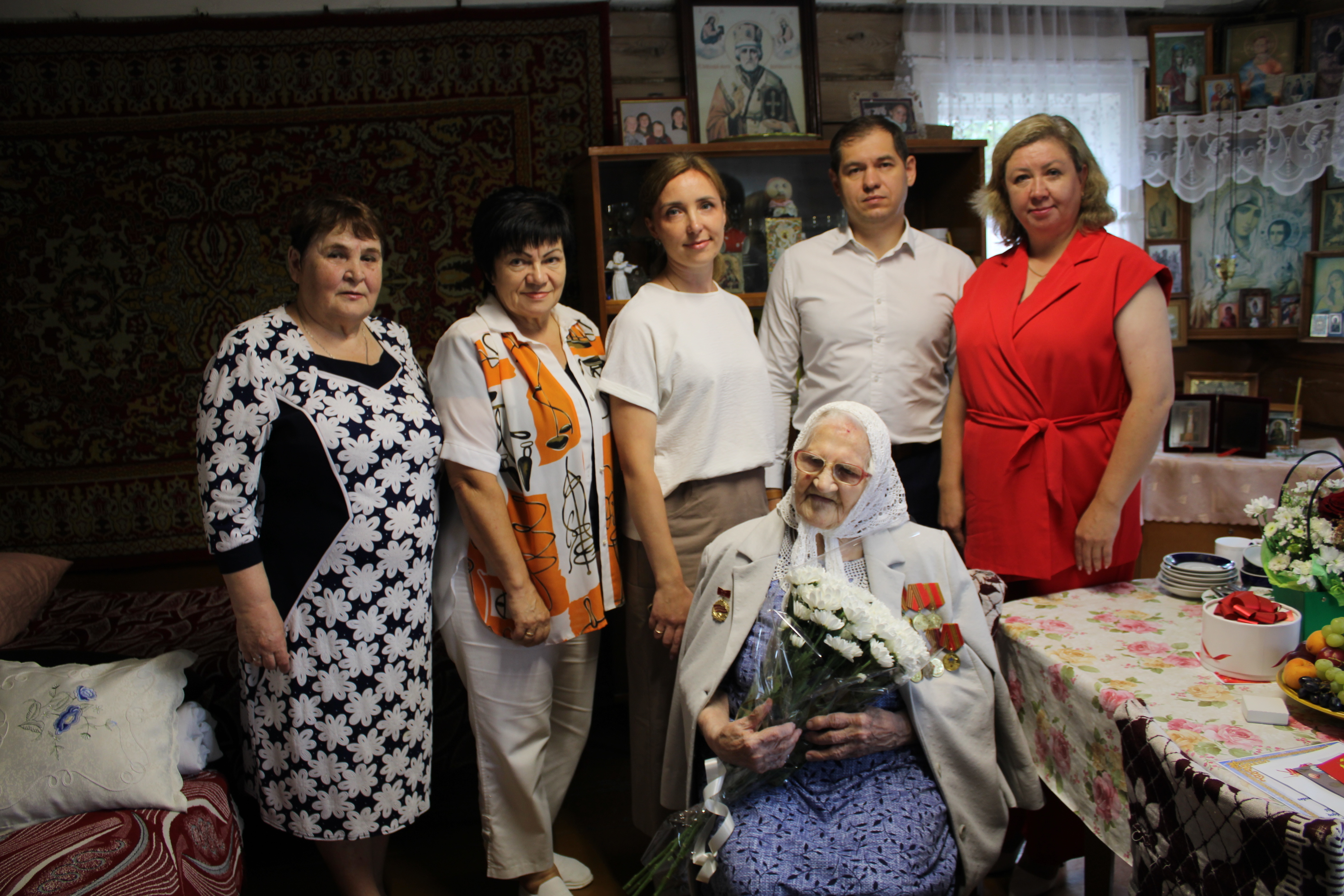 В рамках выезда участники мобильной бригады поздравили с 80-летним юбилеем получателя социальных услуг Антониду Васильевну Каблукову. Имениннице вручили поздравительные адреса и